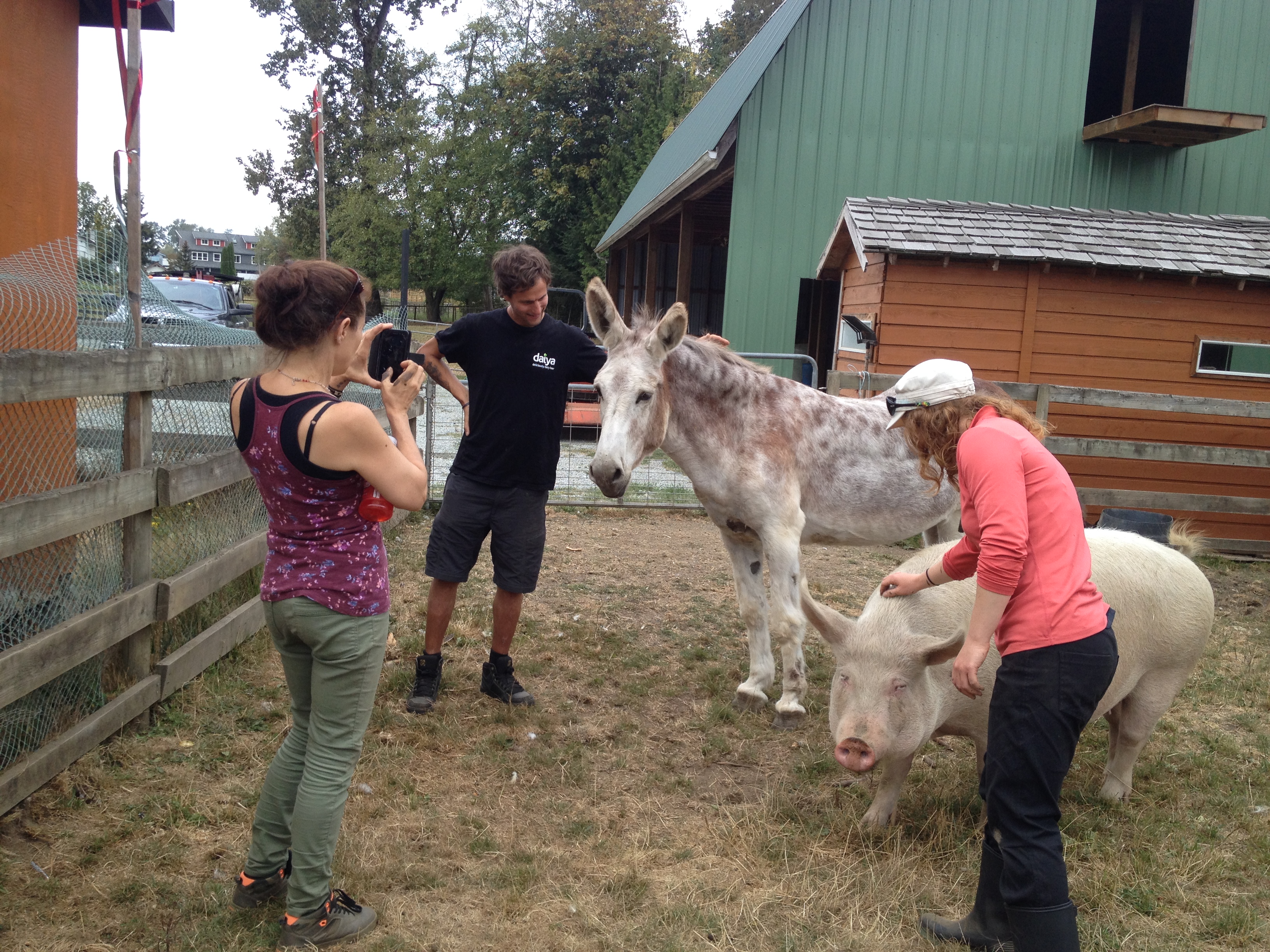 The Happy Herd Farm Sanctuary is just outside of Vancouver and about 2.5 hours’ drive from Whistler. Stephen and Diane, the owners, have rescued dogs, cats, goats, cows, pigs, a donkey, turkeys and many chickens and ducks. Most of these beautiful animals were destined for people’s plates and stomachs, but now they are surrounded by love and affection.